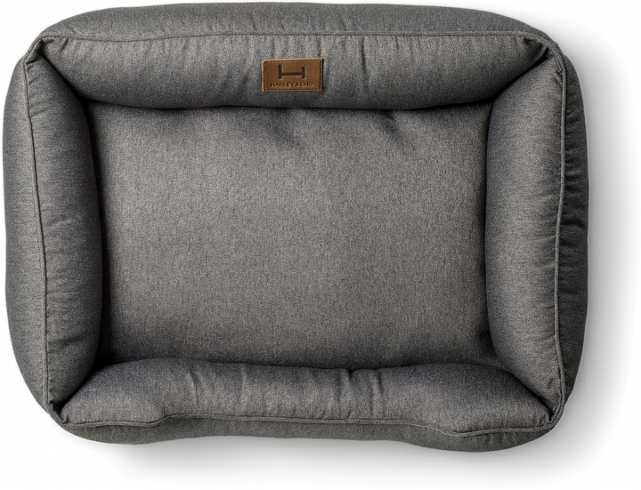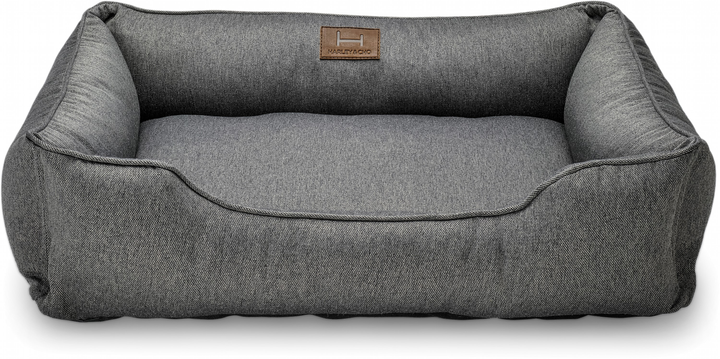 Harley and Cho Dreamer Gray з бортами - лежак, виготовлений з цупкої меблевої тканини - рогожка зї щільністю 350 г / м2,а тест на прання по Мартіндейлу - 30 000 циклів, кольоростійкість 4 (макс 5), фірмові замки YKK (Японія). Тканина прошита армованими нитками. Борти і матрац наповнені гіпоалергенним і антибактеріальним холлофайбером. Фірмові замки YKK (Японія) додають надійність фурнітурі.Багатошарові гіпоалергенні і антибактеріальні наповнювачі зберігають форму м'якого лежака .