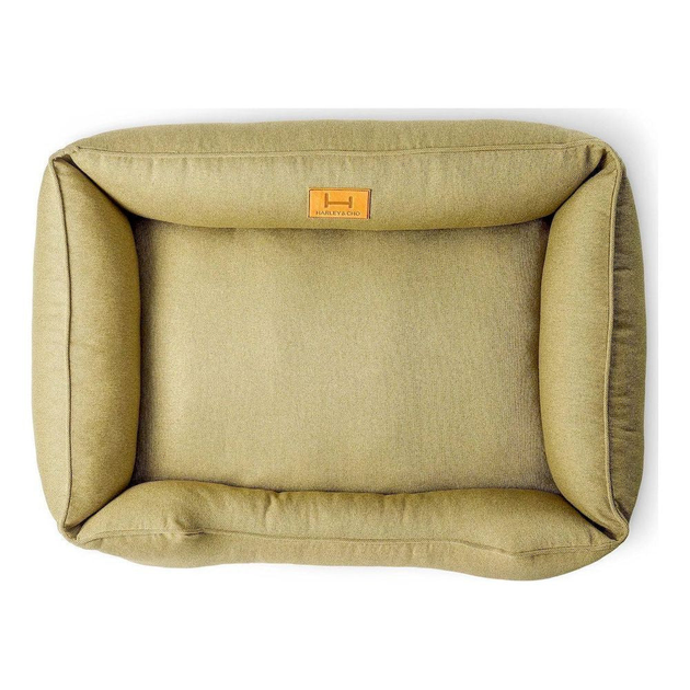 Harley and Cho Dreamer Olive - лежак оливковий, виготовлений з цупкої меблевої тканини - рогожка зї щільністю 350 г / м2,а тест на прання по Мартіндейлу - 30 000 циклів, кольоростійкість 4 (макс 5), фірмові замки YKK (Японія). Тканина прошита армованими нитками. Борти і матрац наповнені гіпоалергенним і антибактеріальним холлофайбером. Фірмові замки YKK (Японія) додають надійність фурнітурі.Багатошарові гіпоалергенні і антибактеріальні наповнювачі зберігають форму м'якого лежака .