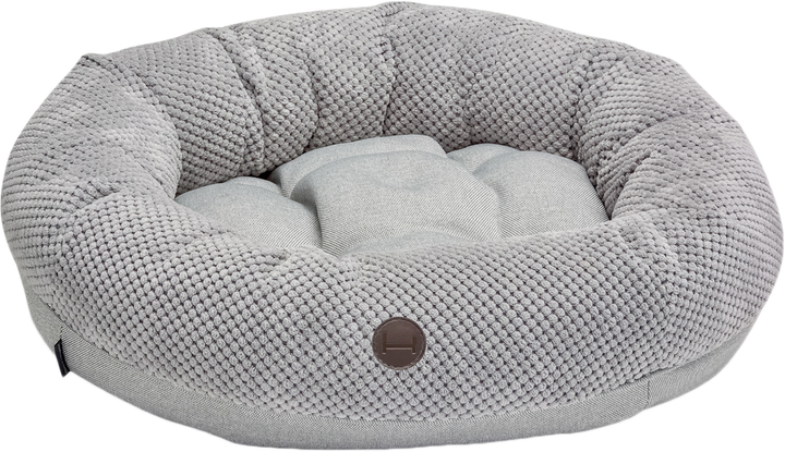 Овальний лежак Bagel Silver від Harley and Cho ідеально підходить для собак і котів, які люблять спати, згорнувшись клубочком або «бубликом». Зроблено з меблевої тканини, м'якої за фактурою, як вельвет. Тканина легко чиститься від шерсті та переться в пральній машині. Всередині лежака є двостороння подушка, її можна перевертати різними фактурами назовні або використовувати окремо як подушку. Наповнювачем є холофайбер, він м'який і водночас добре тримає форму. У лежаку повністю знімний чехол. Лежак можна чистити від шерсті пилососом або випрати в машинці (делікатне прання 30°). Він призначений для кішок і собак. Колір світло-сірий вельвет.