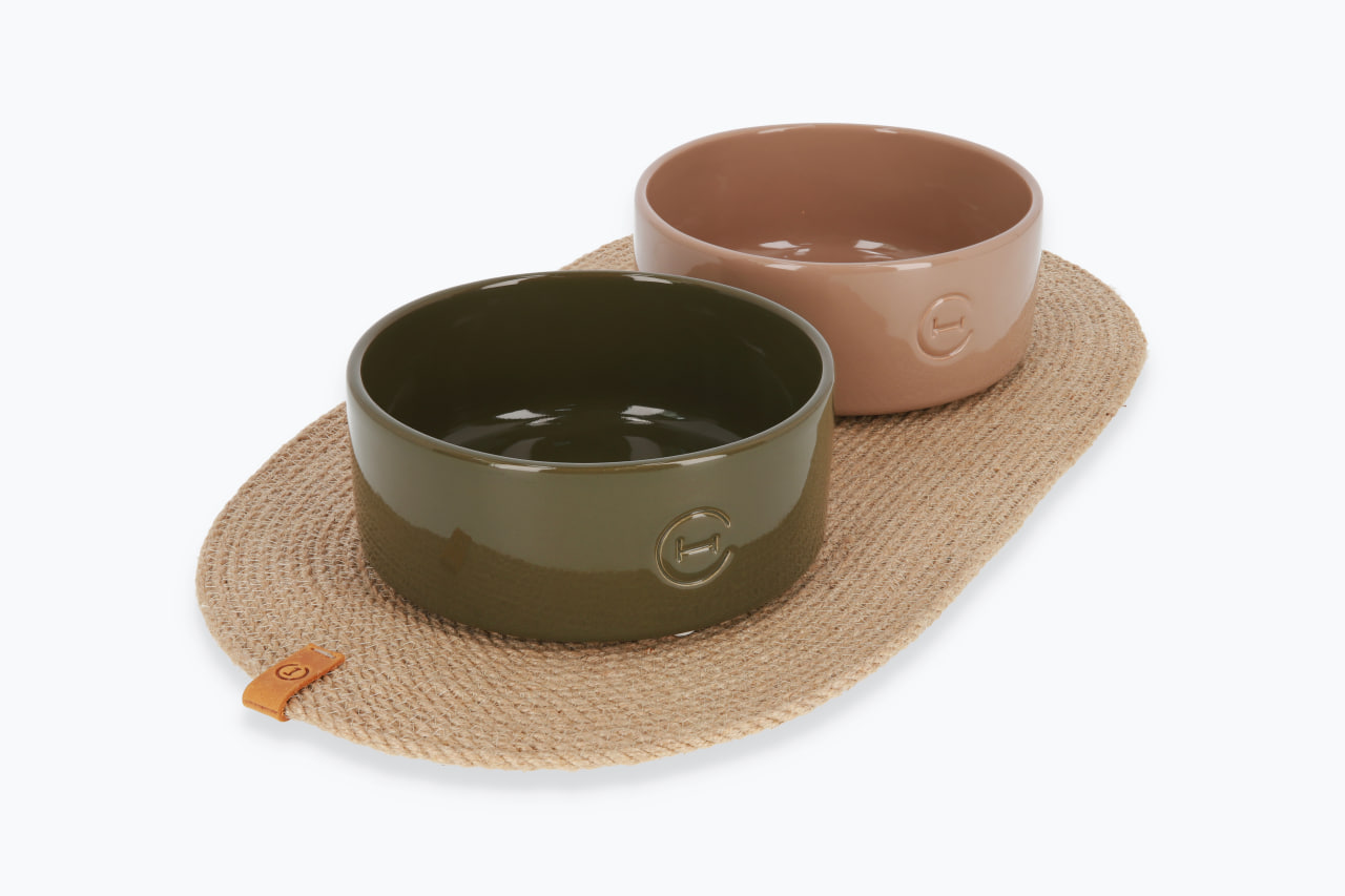 XS (50×30 см) — підходить для керамічних мисочок розміром S і М, а також для мисок Harley and Cho на підставці розміру XS;