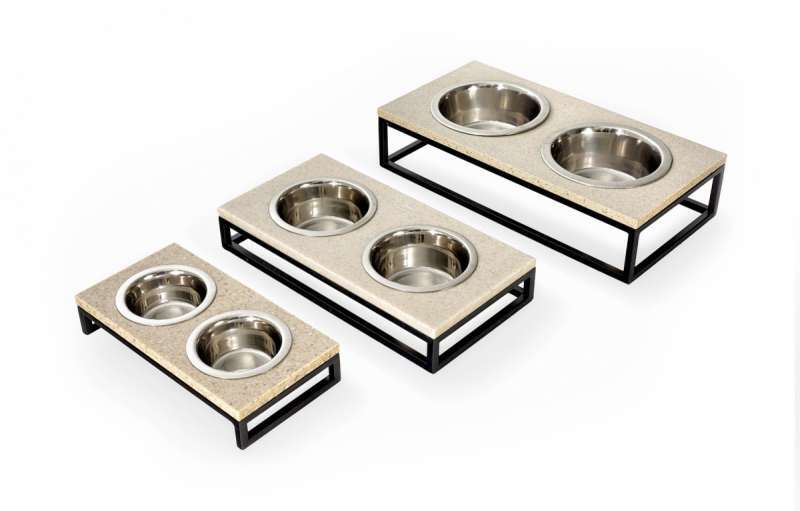 Миски на підставці Harley and Cho Lunch Bar Biege Stone. Колір бежевий камінь + чорний метал. Миски на підставці зі стільницею з каменю - Стійкі - їх неможливо перекинути - Прості в догляді - Екологічні. Миски зроблені в Німеччині, за європейськими стандартами якості, що не містять свинцю та інших небезпечних домішок - Стильні. Гармонійно поєднуються з інтер'єрі єром кухні, коридору або вітальні Увага! Колір кам'янської яної стільниці (вкраплень в камені) може трохи відрізнятися від стільниці на фото. Все тому, що штучний камінь - лідер за кількістю відтінків і кожен новий камінь трохи відрізняється від попередніх Розміри мисок для маленьких і середніх собак чи котів: XS (28x14x5 см) Об'єм мисок: 0,2 літра S (36x18x7 см) Об'єм мисок: 0,45 літра M (42x21x10 см) Об'єм мисок: 0,75 літра. L (42x21x20 см) Об'єм мисок: 0,75 літра.
