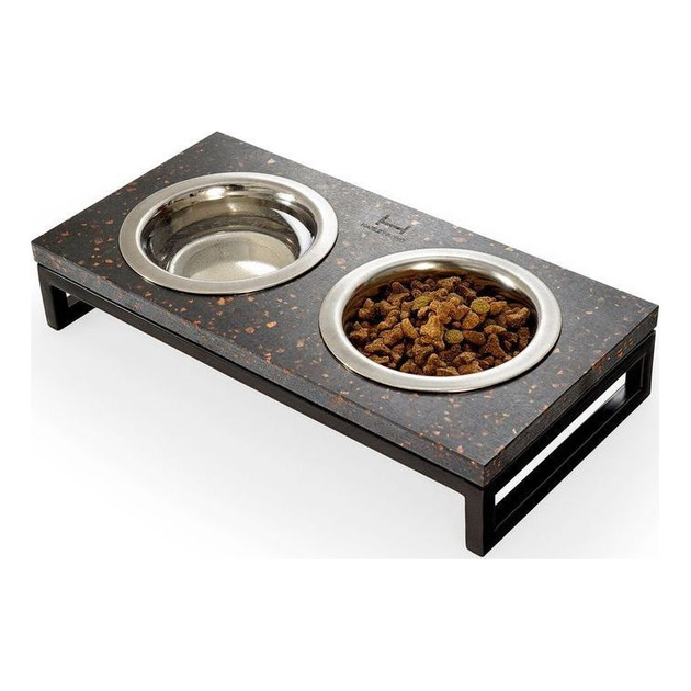 Миски на підставці Harley and Cho Lunch Bar Brown Stone. Колір коричневий камінь+ чорні металеві ніжки. Миски на підставці зі стільницею з каменю - Стійкі - їх неможливо перекинути - Прості в догляді - Екологічні. Миски зроблені в Німеччині, за європейськими стандартами якості, що не містять свинцю та інших небезпечних домішок - Стильні. Гармонійно поєднуються з інтер'єрі єром кухні, коридору або вітальні Увага! Колір кам'янської яної стільниці (вкраплень в камені) може трохи відрізнятися від стільниці на фото. Все тому, що штучний камінь - лідер за кількістю відтінків і кожен новий камінь трохи відрізняється від попередніх Розміри мисок для маленьких і середніх собак чи котів: XS (28x14x5 см) Об'єм мисок: 0,2 літра S (36x18x7 см) Об'єм мисок: 0,45 літра M (42x21x10 см) Об'єм мисок: 0,75 літра. L (42x21x20 см) Об'єм мисок: 0,75 літра.
