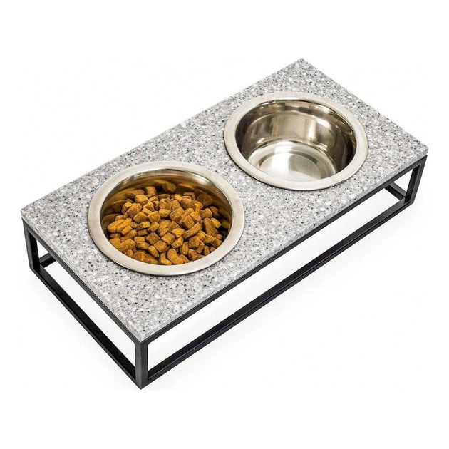 Миски на підставці Harley and Cho Lunch Bar Gray Stone. Колір сірий камінь+ чорні металеві ніжки Миски на підставці зі стільницею з каменю - Стійкі - їх неможливо перекинути - Прості в догляді - Екологічні. Миски зроблені в Німеччині, за європейськими стандартами якості, що не містять свинцю та інших небезпечних домішок - Стильні. Гармонійно поєднуються з інтер'єрі єром кухні, коридору або вітальні Увага! Колір кам'янської яної стільниці (вкраплень в камені) може трохи відрізнятися від стільниці на фото. Все тому, що штучний камінь - лідер за кількістю відтінків і кожен новий камінь трохи відрізняється від попередніх Розміри мисок для маленьких і середніх собак чи котів: XS (28x14x5 см) Об'єм мисок: 0,2 літра S (36x18x7 см) Об'єм мисок: 0,45 літра M (42x21x10 см) Об'єм мисок: 0,75 літра. L (42x21x20 см) Об'єм мисок: 0,75 літра.