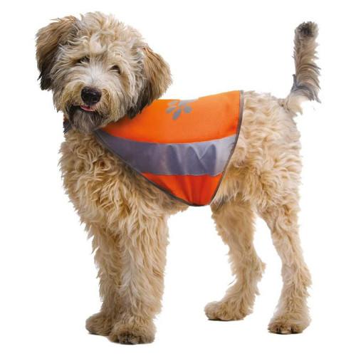 Флуоресцентний помаранчевий колір жилету помітний і не дасть випустити вихованця з виду.