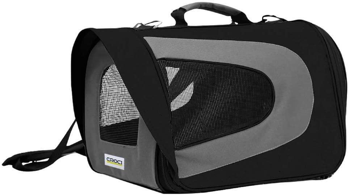 Сумка-переноска для котів і собак Croci ROCKET,чорна. Дуже зручна і сучасна сумка. Вона виготовлена з твердої тканини ПВХ. Усередині сумки є ремінь з карабіном для тварини, який не дозволяє тварині вистрибнути з переноски. Є 3 сіточки для циркуляції повітря.