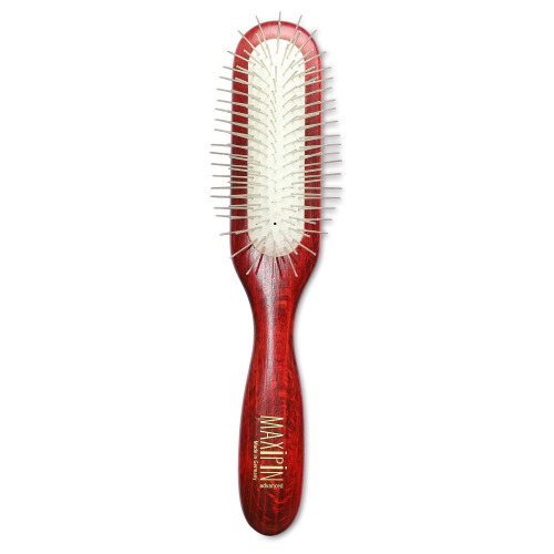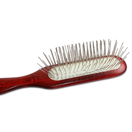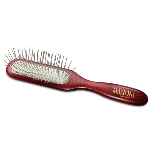 Show Tech Maxi Pin - вузька, поздовжня масажна щітка для тварин , виготовлена з натурального дерева. Нейтралізує статичну електрику і не електризує шерсть. Довгі зубці щітки дозволяють прочесати глибокі шари шерсті, а м'яка гумова основа не дає створювати тиск зубців на шкіру. Щоденне прочісування благотворно впливає на загальний стан шерсті. Зубці щітки розподіляють шкірний жир по всій довжині , що робить шерсть сильнішою, блискучою і здоровою. Такою нехитрою процедурою можна попередити та запобігти появі ковтунів і вузлів на шерсті. Вузьким, довгим гребінцем комфортно прочісувати всю шерсть Щітка відмінно підійде для догляду за довгою, середньої, густою шерстю у великих, середніх і дрібних порід тварин. Довжина зубця: 27 мм. Середньої жорсткості. Матеріал: дерево, зубці - нержавіюча сталь. Довжина щітки: 22 см.