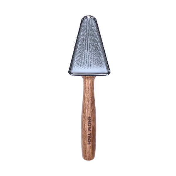 Show Tech Rosewood Extra Life Dliker Triangular, дуже зручна пуходерка, завдяки своїй формі відмінно підходить для роботи в таких зонах, як пахви і за вушками. Також дана модель використовується після купання під час сушіння феном. Працюючи з кучерявою шерстю – розчісуйте її по напрямку росту, а потім проти. Жорстку шерсть – починайте чесати за напрямом, після чого видаліть всі ковтуни і мертві волоски. Ручка виконана з рожевого дерева, зручно лягає в руку і не зісковзує. Основа має трикутну форму з міцного металу. Для кращого результату використовуйте кондиціонер Show Tech. Розмір: 16,5 х 4,5 см. • Розмір робочої поверхні: 4 х 7,8 см. • Довжина зубця: 1,5 см. • Тип зубців: без наконечників.
