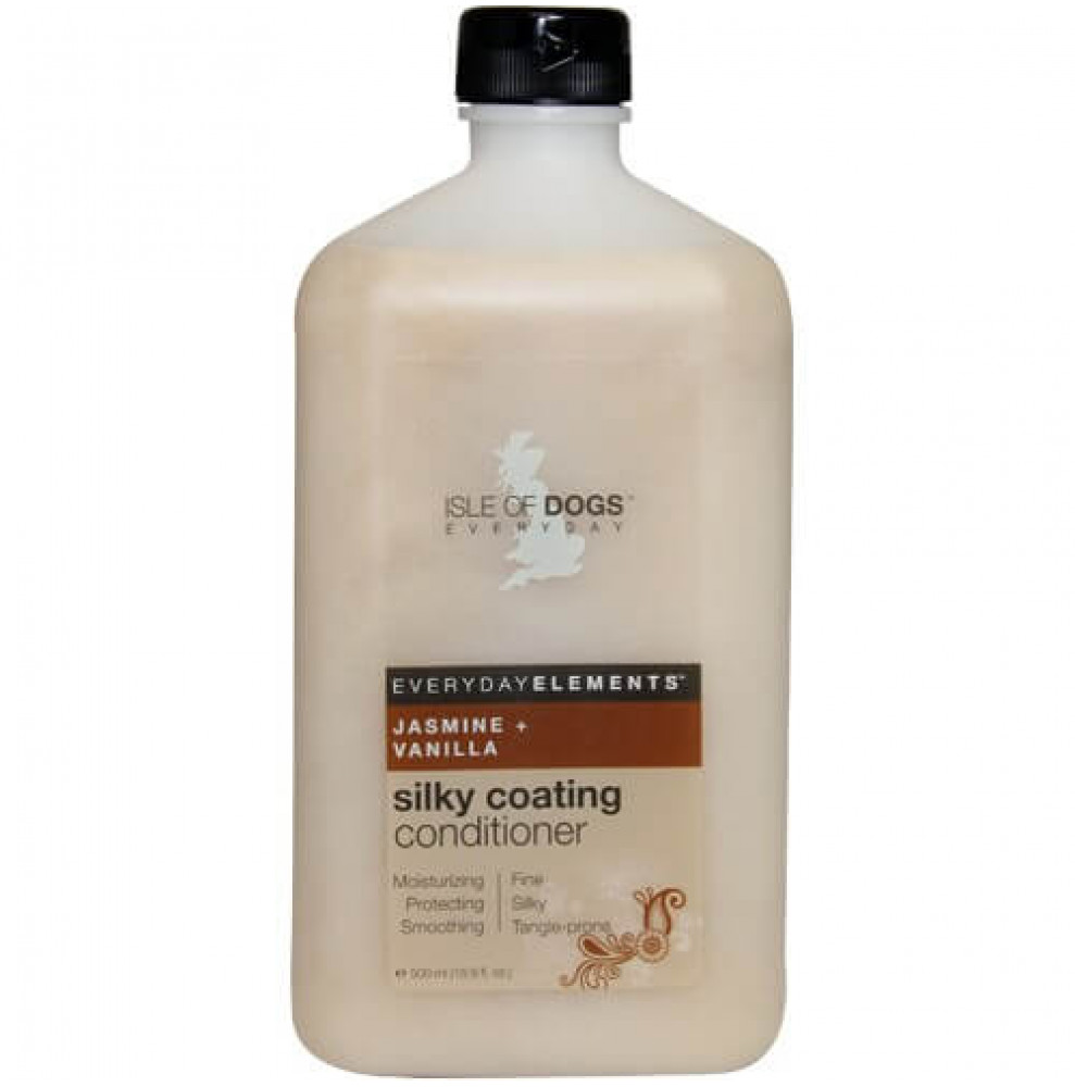 До складу кондиціонеру входить екстракт алое та вітамін Е для надання еластичності та гладкості кожної шерстинки. Кондиціонер Isle of Dogs SILKY COATING актуальний для блиску шерсті у собак із сухим, пошкодженим волоссям та для профілактики такого стану. Також його використовують для дбайливого очищення довгої та сухої шерсті, зволоження та легкого живлення шерстного покриву, щоб зробити пасма гладкими та блискучими. Розрахований кондиціонер для маленьких (йоркширський тер'єр, пекінес, ши-тцу, японський хін), середніх (спанієлі, сеттери), і великих (афганська хорт, ньюфаундленди) порід собак. Він допомагає очистити покрив від визрілих волосків і акуратно видалити їх під час миття. Додаткова перевага кондиціонера для спадної шерсті полягає в запобіганні ковтунам та полегшенні розчісування. Разом із шампунем SILKY COATING та спреєм SILKY COATING із тієї ж серії Everyday Elements ефект від кондиціонера посилюється.