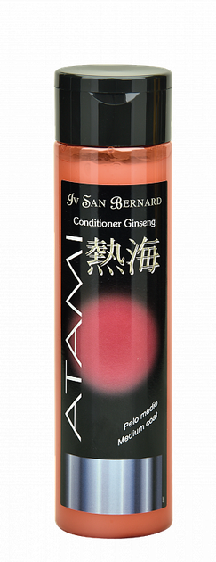 Кондиціонер Iv San Bernard Ginseng для для собак і кішок, живлення та відновлення шкіри і шерсті, 250 мл. Кондиціонер призначений для довгошерстих собак і кішок. Спеціальна формула зі пом'якшуючими і текстурирующими компонентами забезпечує глибоке живлення шкіри, надає блиск, гладкість і сяйво вовни, усуває статику. Регулярне застосування кондиціонера значно знижує сплутування шерсті і покращує її якість. Використовується після миття лінії ATAMI Білий Мускус.