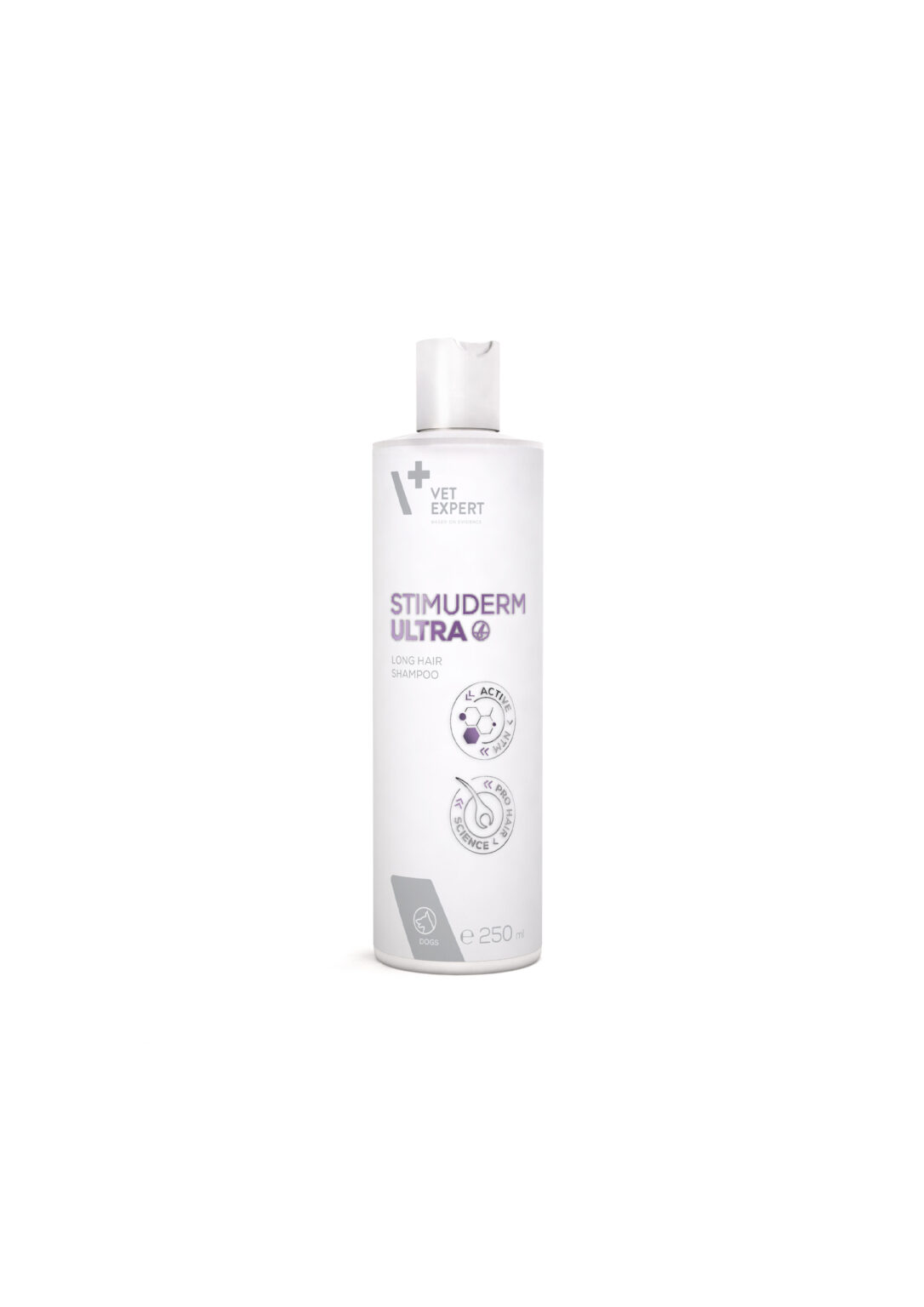 Шампунь для шерсті Stimuderm Ultra Long Hair Shampoo створений на основі унікальної молекули ACTIVE NTM™. Цей інгредієнт є речовиною вітамінного походження, стимулюючий ріст волосся ефект якого підтверджено клінічними випробуваннями. Його дія посилюється екстрактом хвоща польового, який допомагає підтримувати шкіру в хорошому стані. Вміст гідролізованих білків полегшує розчісування шерсті, що вкрай важливо, особливо у довгошерстих собак. Крім того, вони захищають від утворення ковтунів, що робить грумінг більш легким і менш обтяжливим як для собаки, так і для її господаря.