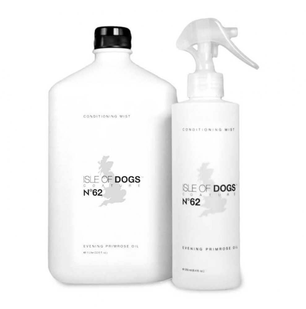 Isle of Dogs з олією вечірньої примули № 62 - спрей-кондиціонер створений для того, щоб зволожити, наситити шерсть собаки та заспокоїти її шкіру. Цей засіб має легкий і дуже приємний аромат, допомагає збільшити часові проміжки між миттям вихованця. Спрей-кондиціонер Isle of Dogs №62, що не змивається усуває неприємні запахи від собаки. Також можна купити спрей №62 для розчісування шерсті, щоб полегшити догляд за довгою шерстю або кучерявими пасмами вихованця.