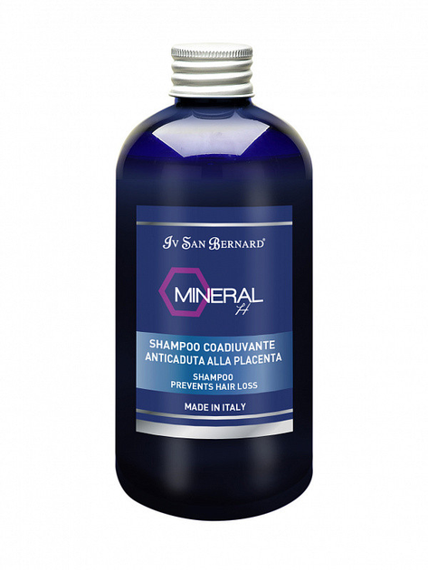 Шампунь Iv San Bernard Mineral H для собак проти випадіння шерсті, з плацентою. У шампуні міститься плацента - природна комора біоактивних сполук. Ці компоненти сприяють росту волосся, мають протизапальну дію. Після використання цього шампуню шерсть стає яскравою і блискучою та більш густою.