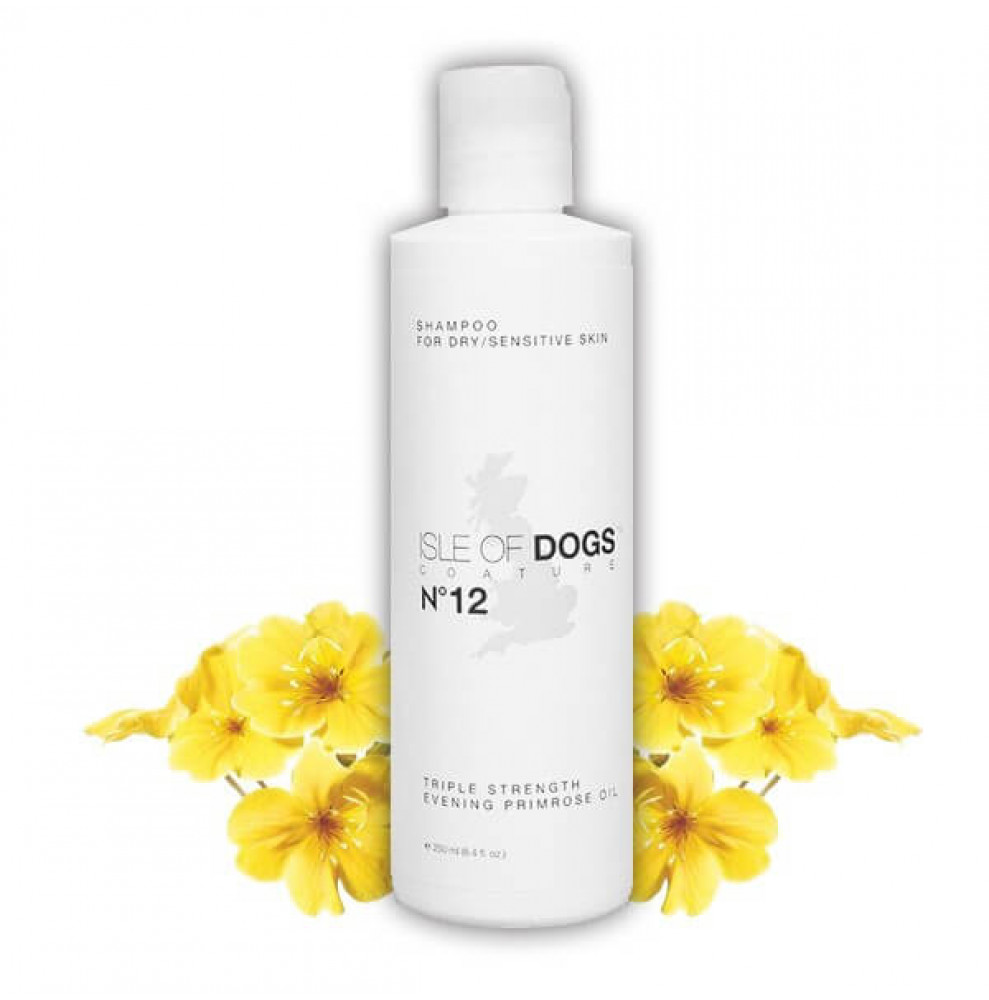 Isle of Dogs з олією вечірньої примули №12 дуже високоякісний шампунь, який заспокоює шкіру собак, сприяє відновленню еластичності шерсті та глибоко її живить. Він є найбагатшим на корисні речовини з усієї лінійки продуктів Isle of Dogs та розрахований на регулярне застосування. Шампунь з маслом вечірньої примули посиленої дії можна купити в Шпіцеманія для вихованців із сухою шкірою та шерстю, із подразненнями. Може бути розведений водою у співвідношенні 1:10. Доступний в об'ємах: 50мл, 250мл, 1л, 3,78л (галон)