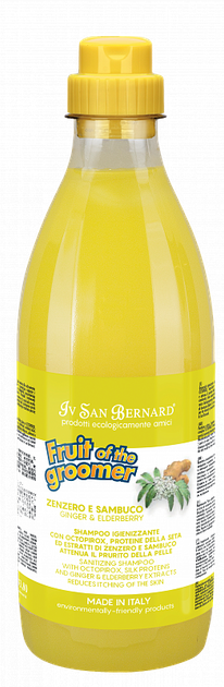 Шампунь для всіх типів шерсті від подразнень та лупи Iv San Bernard Ginger and Elderberry шампунь призначений для будь-якого типу шерсті собак і кішок, шкіра яких схильна до подразнень та лупи, ідеально підходить для частого застосування. Містить спеціальні речовини, такі як OCTOPIROX. Забезпечує антибактеріальну дію, бореться з лупою, зменшує запалення та свербіж шкіри. Спеціальні косметичні / лікувальні компоненти роблять шерсть блискучою та шовковистою.