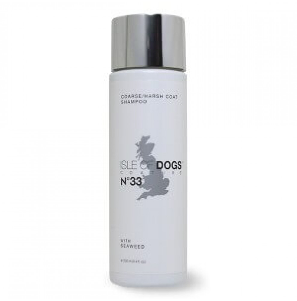 Isle of Dogs № 33 - шампунь для твердої шерсті, який м'яко очищає її, але не пересушує. Такий ефект можливий завдяки натуральним інгредієнтам та ретельно розробленому складу. Він призначений як для підготовки до виставок собак, так і для миття у звичайному житті. Використовують його не тільки для жорсткошерстих порід, але і для вихованців з об'ємною шерстю, «що стоїть». Наприклад, з успіхом застосовується цей шампунь для тер'єрів та шнауцерів. Як шампунь для такс з жорсткою шерстю або шампунь для пуделя із завитками він також показує відмінний результат. Рекомендований для розведення водою у співвідношенні 10:1. Доступний в об'ємах: 250 мл, 1л
