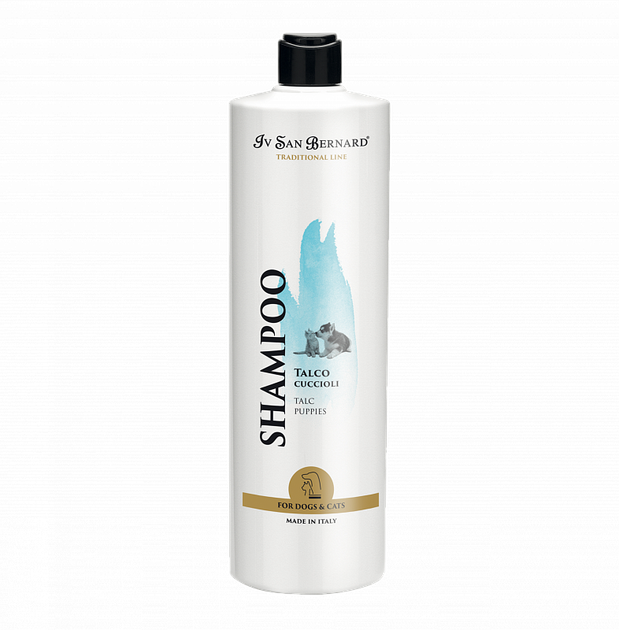 Шампунь для цуценят і кошенят Тальк Iv San Bernard TRADITIONAL Talc. Ніжний засіб призначений для кошенят і цуценят всіх порід. М'яка формула дбайливо піклується про шкірі та шерсті, не дратує око, залишає приємний аромат талькового пудри. Білки меду в складі шампуню усувають патогенну мікрофлору і підтримують здоров'я шкіри та шерсті. Підходить для частого застосування і може використовуватися для щоденного очищення лап і мордочки.