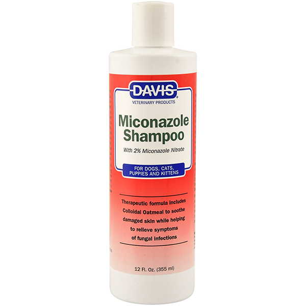 Davis Miconazole Shampoo - ефективний м'який шампунь, який можна використовувати для миття собак, котів, цуценят і кошенят в складі комплексної терапії при діагностуванні у домашніх вихованців захворювань шкіри, викликаних грибками. Допомагає ефективно боротися зі стригучим лишаєм на будь-якій стадії інфекції, усуває лущення, викликане себореєю.