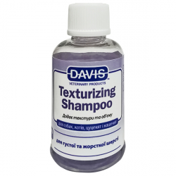 Davis Texturizing Shampoo, шампунь для жорсткої та об`ємної шерсті у собак та котів, концентрат - це текстуризуючий шампунь для собак і кішок , призначений для домашніх тварин з жорсткою і грубою шерстю. Наприклад, засіб буде ідеальним для таких порід собак, як тер'єри, акіти, шпіци, коллі та інші. Шампунь однаково хороший як для частого використання, так і при підготовці до виставок, оскільки має досить м'який склад, який безпечний для «втомленої», пошкодженої і перевантаженої шерсті.