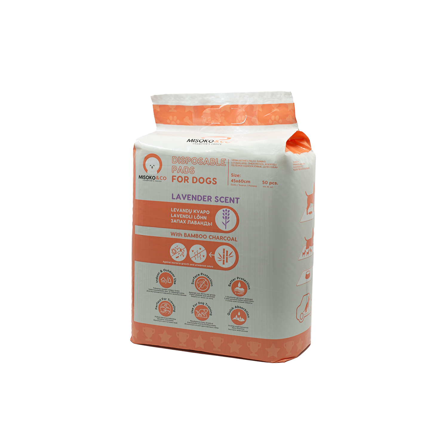 Misoko&Co Одноразові пелюшки для собак з вугіллям та ароматом лаванди, 45*60 см, 50 шт