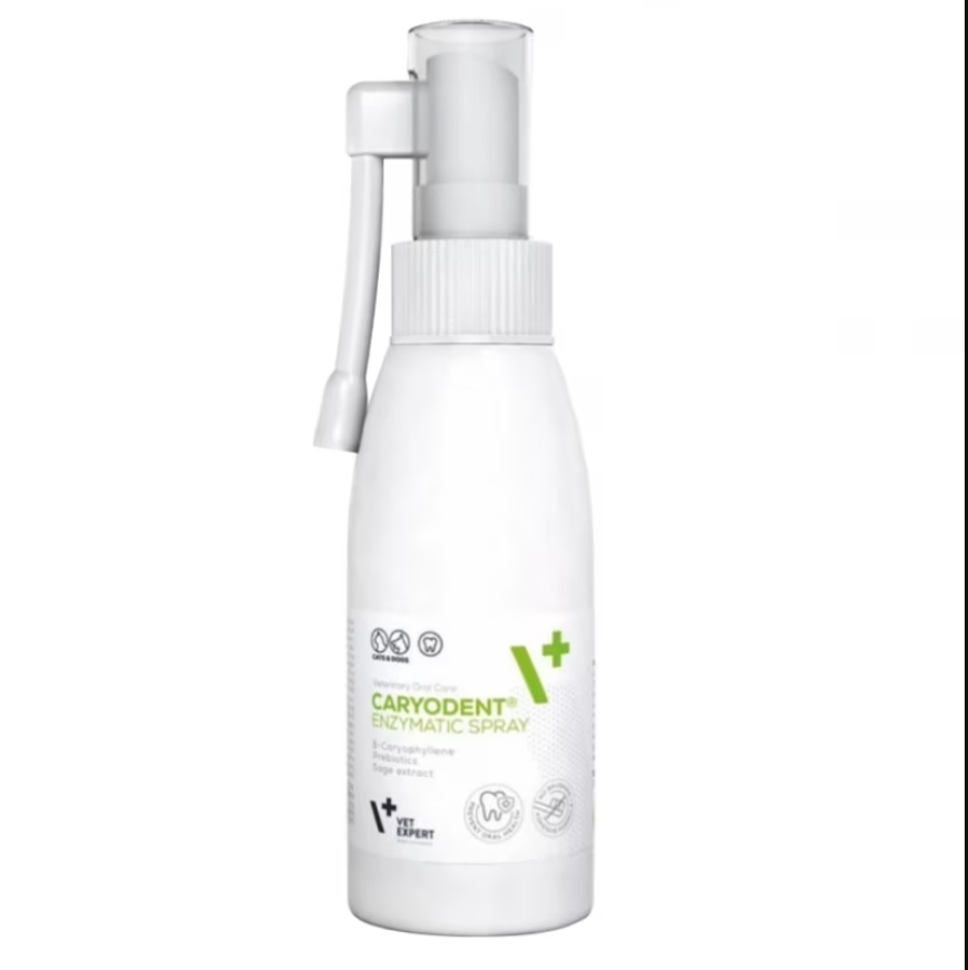 Vet Expert CaryoDent Enzymatic Spray - ветеринарний засіб для щоденного догляду за ротовою порожниною собак і котів. Ензимна формула допомагає підтримувати чистоту зубів, зменшує утворення нальоту та сприяє здоров’ю ясен.