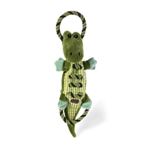Gator Ropes-A-Go-Go - надміцна іграшка для собак. Петстейджес крокодил великий з ультраміцною текстурою, кільцем та мотузкою для ігор у перетягування. Три пищалки та м’ятий папір -шуршить та пищить ! Внутрішня поверхня створена з надміцної водовідштовхуючої тканини - кордури. Ультраміцна окантовка з подвійними швами, всередині іграшка наповнена нейлоном. Виготовлена із матеріалу по технології K9 TUFF GUARD K9 TUFF Technology, а матеріал, виготовлений за цією технологією перевищує навіть найсміливіші уявлення про міцність. Витримає навіть найпотужніші атаки щелеп. Іграшки з серії Ropes-A-Go-Go виготовлені з подвійного матеріалу – це новий рівень іграшок для жування. Ці іграшки унікально поєднують в собі мотузки, надміцний матеріал кордуру, плюш, пищалку та зім’ятий папір. Ідеальний варіант для шалених війн з перетягуванням, фаворит для любителів гризти іграшки та іграшка для тягання у зубах. Розмір: L (довжина) =57 см W (ширина) = 23 см H (висота) = 8 см