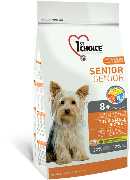 Сухий корм для літніх собак декоративних і дрібних порід 1st Choice зі смаком курки - це супер преміум корм на основі м'яса курки для літніх мініатюрних і малих собак віком понад 8 років або для дорослих собак, схильних до зайвої ваги. Для підтримки здорової ваги корм містить L-карнітин, який допомагає розщеплювати жир і перешкоджає його накопиченню. Загальні переваги суперпреміум харчування 1st Choice Курка — головний інгредієнт цієї збалансованої й дуже смачної формули. Без кукурудзи, пшениці та сої. L-карнітин допомагає засвоювати жир і перешкоджає його відкладенню. Пребіотики й екстракт імбиру покращують травлення. Без хімічних барвників, консервантів і смакових добавок. Натурально збережений завдяки вітаміну Е. Суглоби +: Глюкозамін, хондроїтин, глікозамінглікани та пептиди колагену підтримують здоров'я суглобів і хрящів. Дента+: Чудове поєднання екстракту зеленого чаю, швидкорозчинного вітаміну С, клітковини та петрушки освіжає віддих і забезпечує гігієну зубів і порожнини рота. Антиоксиданти+: Потужні антиоксиданти вітамін С і Е сприяють уповільненню процесів окислення, які є причиною процесу старіння й багатьох захворювань.