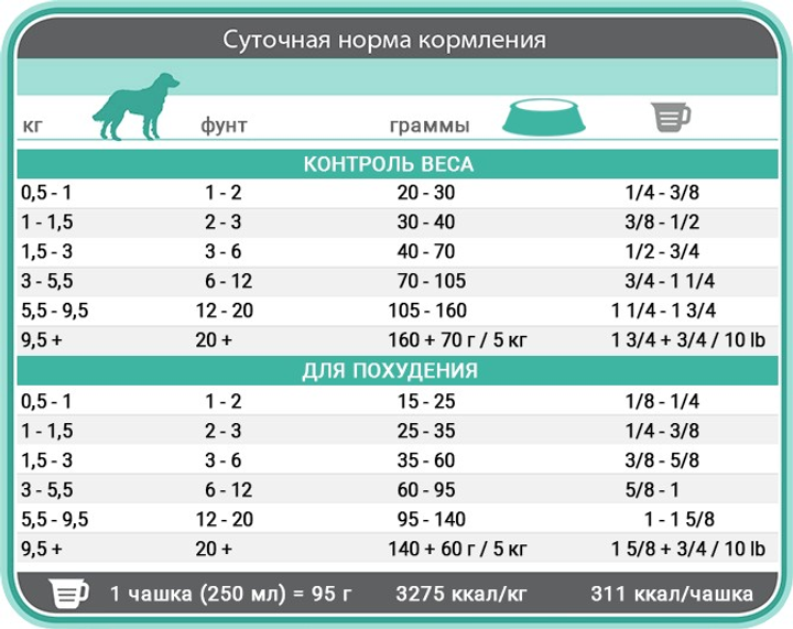 -забезпечує собакам повноцінне і збалансоване харчування, допомагаючи при цьому знизити вагу і підтримувати нормальну масу тіла без втрати м'язової маси, в тому числі після стерилізації та кастрації;