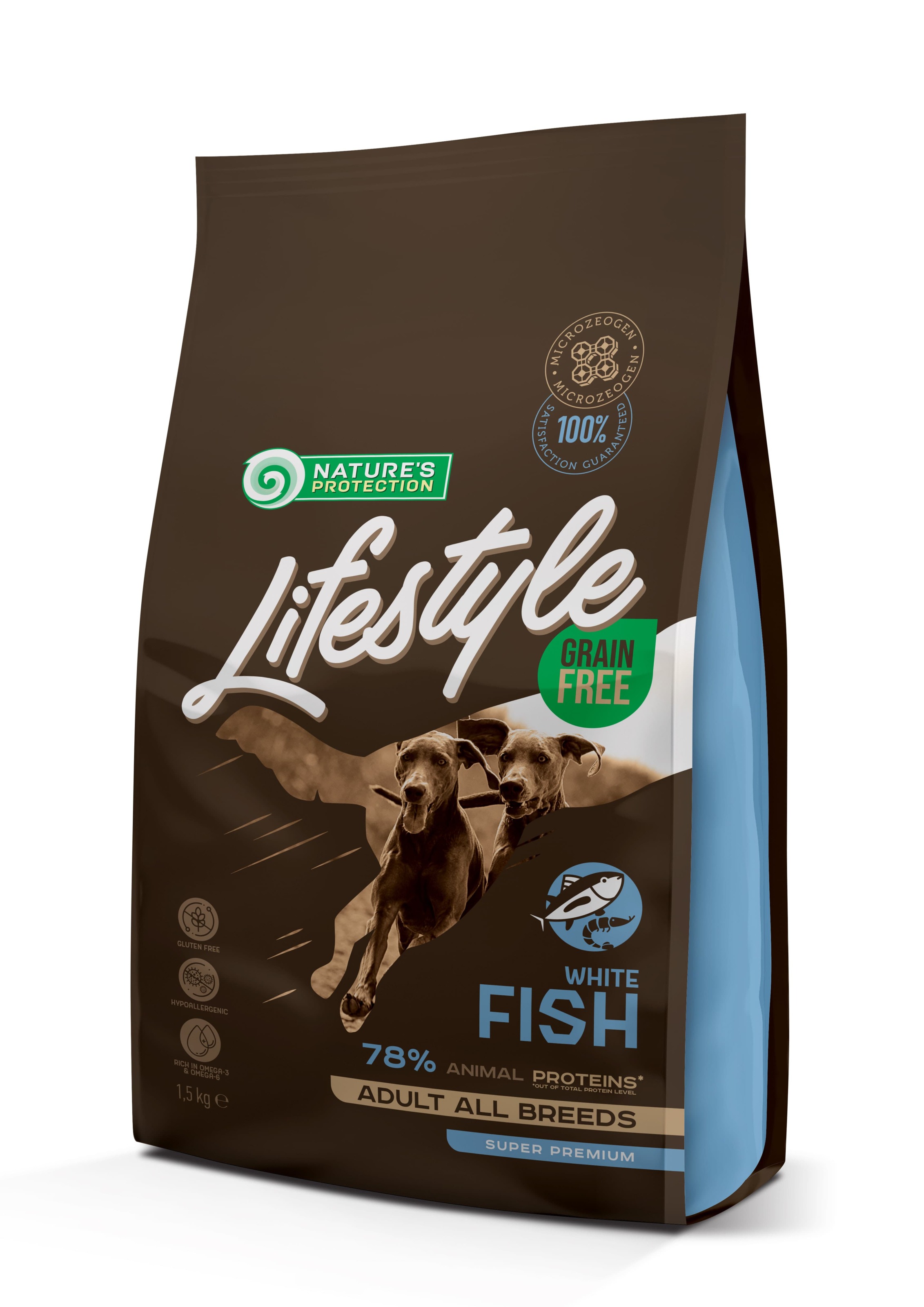 Склад: біла риба 40% (сушена і подрібнена), сушена картопля, горох, батат, жир птиці, жом цукрових буряків, борошно з криля (мін. 4%), лососеве масло, динамічно мікронізований клиноптилоліт (1%), насіння льону, фруктоолігосахариди, екстракт юки, зелений чай, сушена календула (джерело лютеїну).