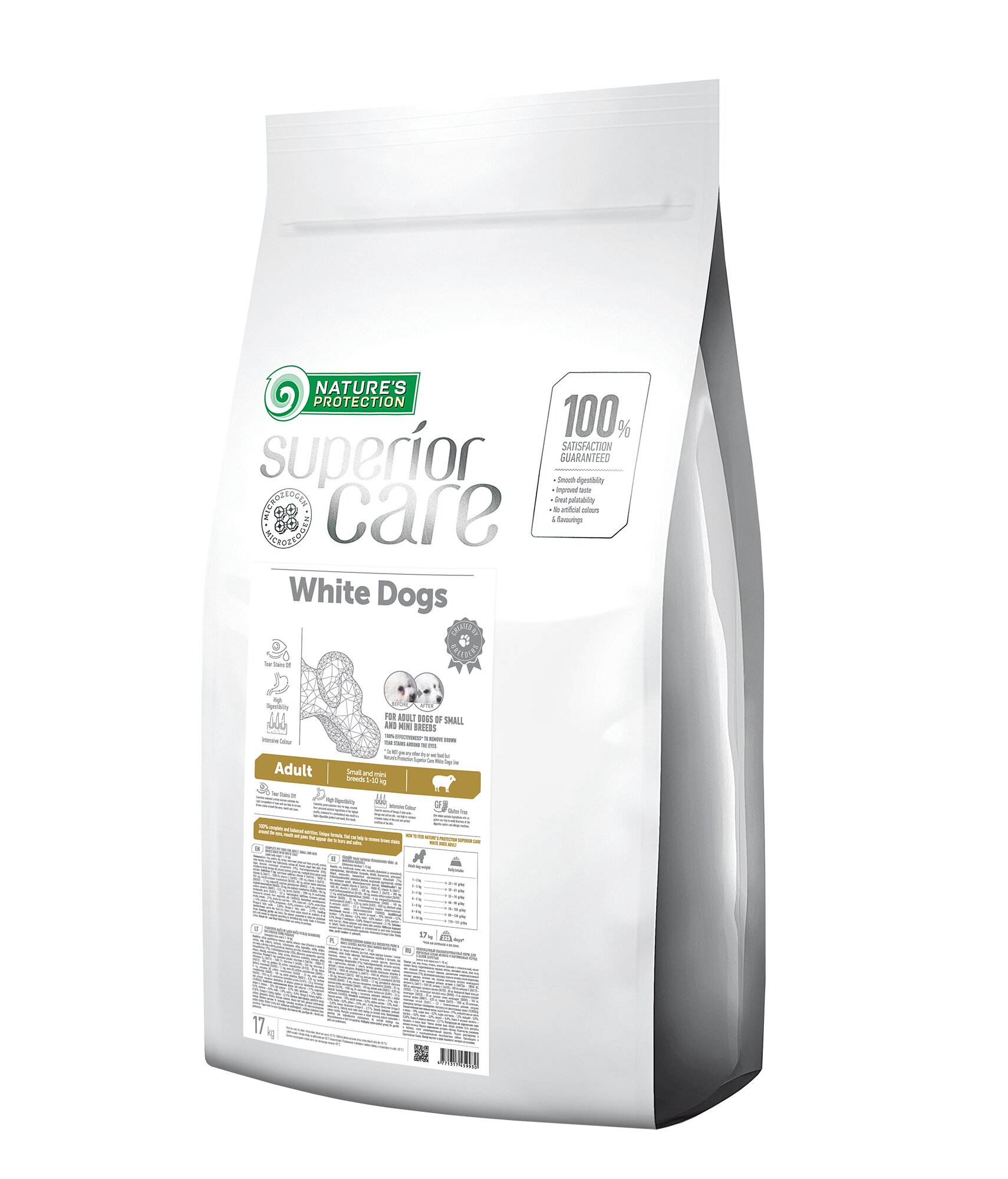 - «White Dogs» був розроблений за спеціальною формулою з метою надання найоптимальнішого рішення по годівлі собак білого забарвлення;