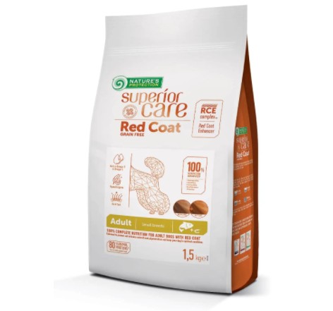 Повноцінний беззерновий корм із лососем для дорослих собак малих порід із рудою шерстю