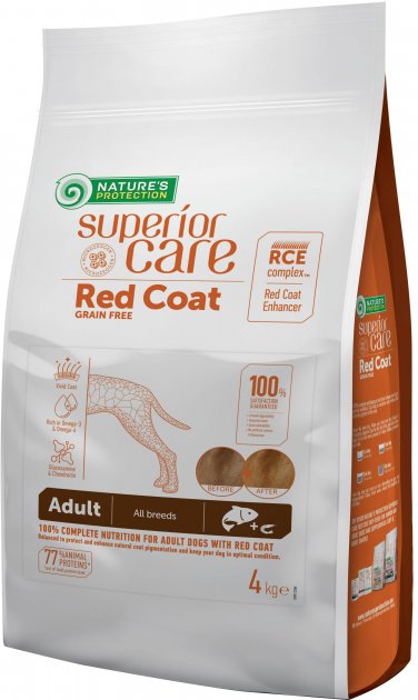 Повноцінний беззерновий корм із лососем для дорослих собак усіх порід із рудою шерстю.