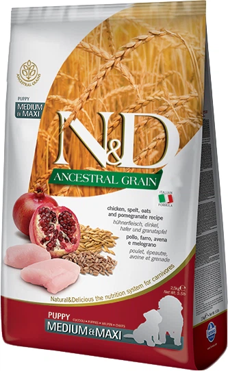 Низькозерновий сухий корм Farmina N&D, для цуценят середніх і великих порід, курка з гранатом.