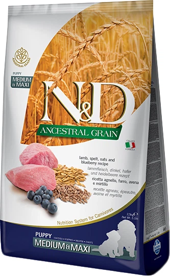 Низькозерновий сухий корм Farmina N&D, для цуценят середніх і великих порід, ягня з чорницею.