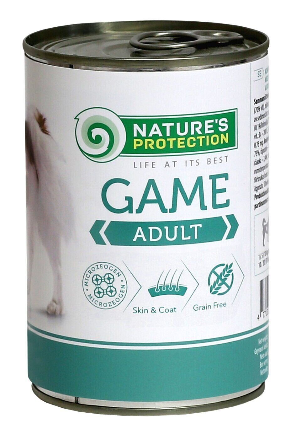 Консервований корм Adult Game - це натуральні шматочки м'яса дичини, представлені в бульйоні і доповнені мінералами.