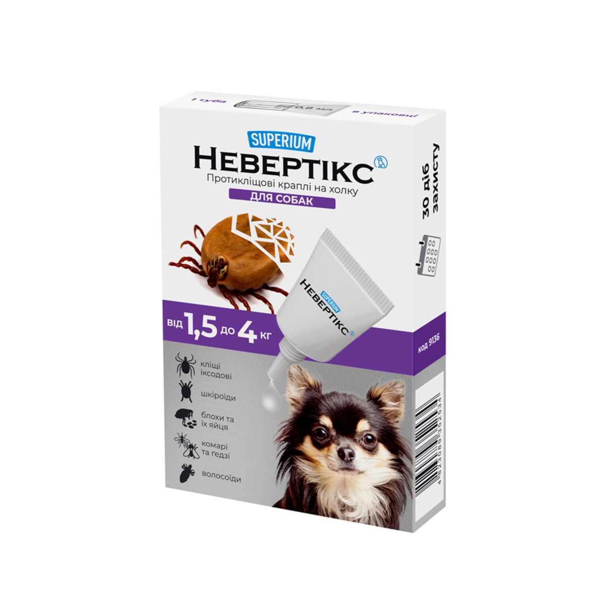 СУПЕРИУМ Невертікс, краплі проти бліх і кліщів для собак, 1,5-4 кг