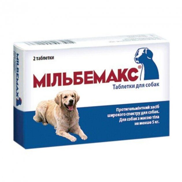Показання: Мільбемакс призначають з лікувальною та профілактичною метою при нематодозах, цестодозах та змішаних нематодо-цестодозних інвазіях, викликаних гельмінтами наступних видів: цестоди – Dipylidium caninum, Taenia spp., Echinocoaus multilocularis, Meso; нематоди - Ancylostoma caninum, Toxocara canis, Toxascaris leonina, Trichuris vulpis, Renosoma vulpis (знижує інтенсивність зараження), Angiostrongylus vasorum (знижує інтенсивність зараження), Dirofilaria immitis (з профілактичною метою).