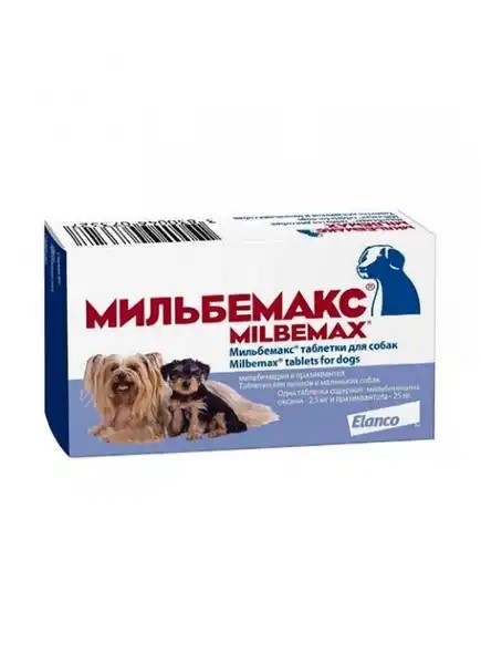 Показання: Мільбемакс призначають з лікувальною та профілактичною метою при нематодозах, цестодозах та змішаних нематодо-цестодозних інвазіях, викликаних гельмінтами наступних видів: цестоди – Dipylidium caninum, Taenia spp., Echinocoaus multilocularis, Meso; нематоди - Ancylostoma caninum, Toxocara canis, Toxascaris leonina, Trichuris vulpis, Renosoma vulpis (знижує інтенсивність зараження), Angiostrongylus vasorum (знижує інтенсивність зараження), Dirofilaria immitis (з профілактичною метою).