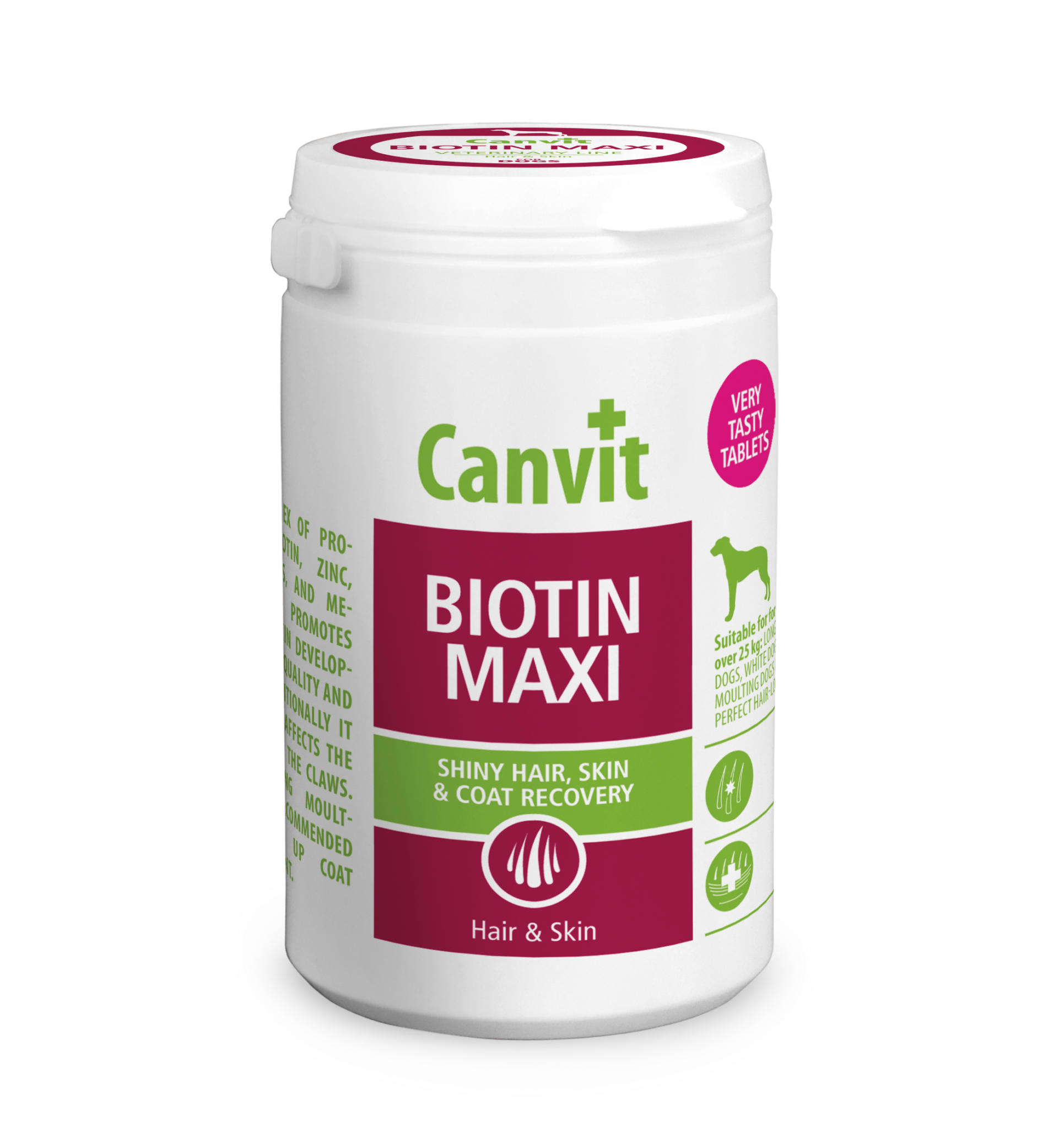 BIOTIN MAXI призначений для собак масою тіла понад 25 кг. Для ідеальної шерсті у собак усіх окрасів. Комплекс проактивних речовин таких як біотин, цинк, вітаміни групи В і метіонін позитивно впливає на линьку і підтримує гарний стан шкіри, блиск і якість шерсті, зміцнює кігті. Швидке відновлення шерсті під час линьки. Живлення та живий блиск. Підвищений вміст біотину – вітаміну краси та хелату цинку.