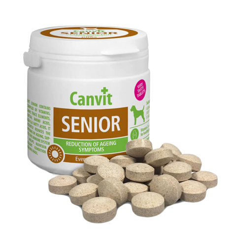 Canvit Senior for Dogs для собак похилого віку. Canvit Senior містить комплекс вітамінів, мікроелементів в органічній хелатовій формі, незамінних амінокислот та поліненасичених жирних кислот Омега-3,6. Ефективно уповільнює ознаки старіння, підтримує імунну систему, забезпечує відмінну кондицію, та допомагає підтримувати м’язову масу. Підвищений вміст антиоксидантів попереджує старіння.